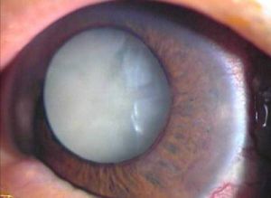 (3)成熟期:晶状体完全混浊,视力降至眼前手动或光感,但光定位和色觉正常。传统观点,此期是手述的最佳时期。